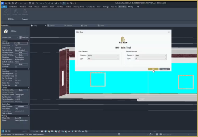 BIMHive's Join Tool automates joining intersecting elements in Revit, batch processing walls, floors, and columns while working efficiently with irregular shapes. This eliminates manual work, reduces material calculation errors, and improves model quality control.