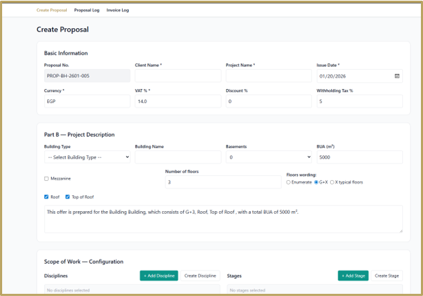 BIMHive's generator automates proposal and invoice creation with saved templates, eliminating repetitive tasks and preventing errors. It integrates with project data to produce professional documents that enhance efficiency and accelerate approvals.